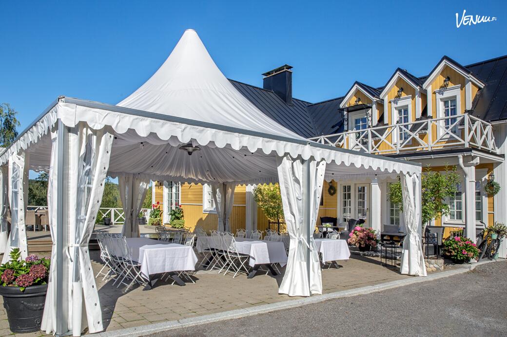 Olimme itse asiassa Villa Stenbergissä Lohjalla juhlimassa ystäväni polttareita jokunen vuosi sitten. Kyseessä on monipuolinen juhlatila, joka tarjoaa sekä tyylikkäät sisätilat että huikean hienon ulkoalueen, jossa olisi ihana järjestää puutarhajuhlat. Paikan majoituskapasiteetti jopa 39 henkilöä, joten osa hääseurueesta voisi viettää täällä helposti koko viikonlopun.