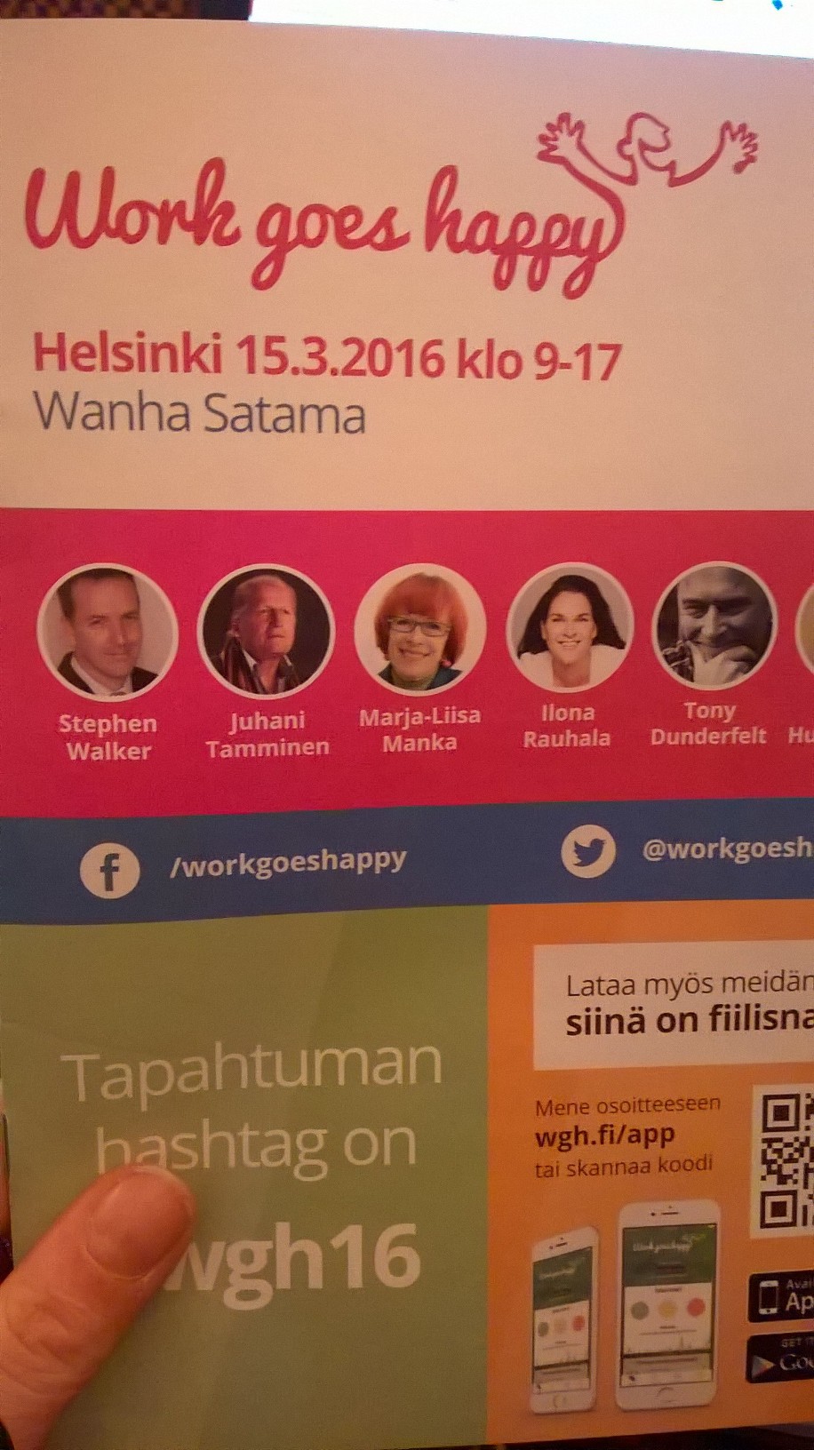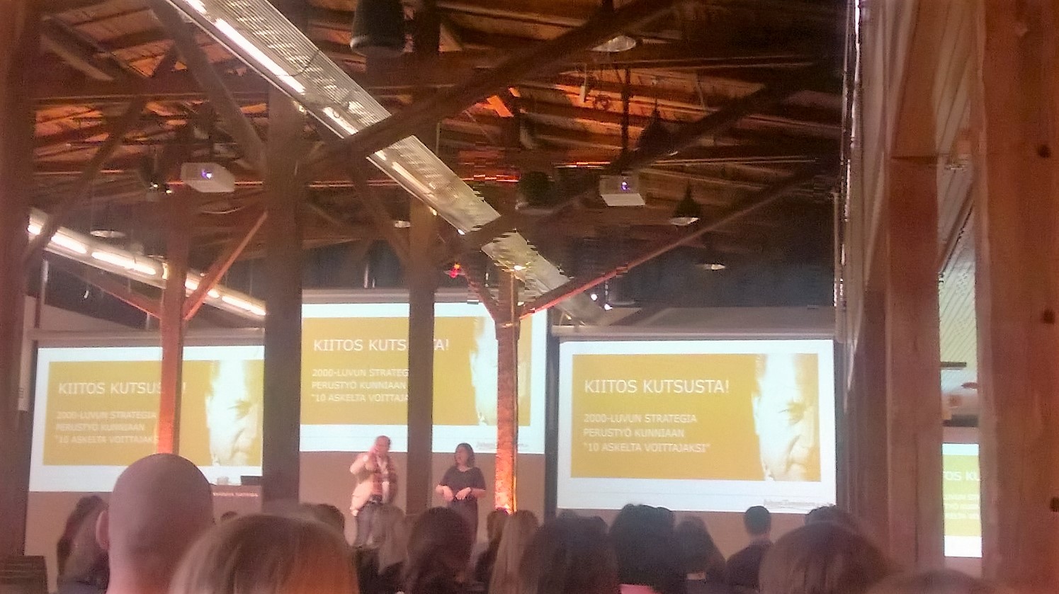 Kävin tänään ”Work goes happy” –tapahtumassa Wanhassa Satamassa. Messuilla oli useita mielenkiintoisia näytteilleasettajia ja inspiraatiota työhyvinvoinnin kehittämiseen sekä vaikkapa tyky –päiviin. Ohjelmaa, workshoppeja ja puhujia oli monipuolisesti laidasta laitaan aina vatsan hyvinvoinnista Juhani Tammisen ”10 askelta voittajaksi” –luentoon (kuvassa). Parhaiten minulle kolahti kuitenkin vakuutusyhtiö Ilmarisen työhyvinvointijohtajan, Katri Huoposen, kertomus siitä, kuinka parempi työelämä lisää yrityksen tulosta.