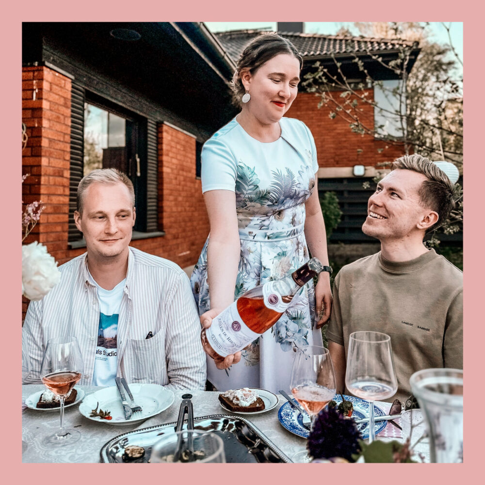 Sen kunniaksi järjestinkin ystävilleni ihanan illan Pakilan sukukommuunin puutarhassa. Maistelimme roseeviinejä ja nautimme pientä purtavaa, jotka olin ihan itse parittanut ja grillannutkin! Tällä kertaa maisteluraati oli “all male panel”, koska halusin myös vähän murtaa sitä stereotypiaa, että rosee olisi jokin “ämmien pikku kesäjuoma”.