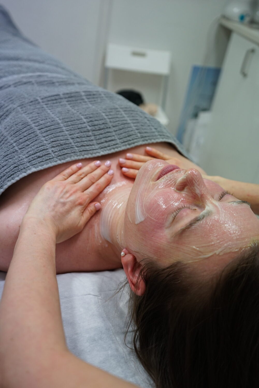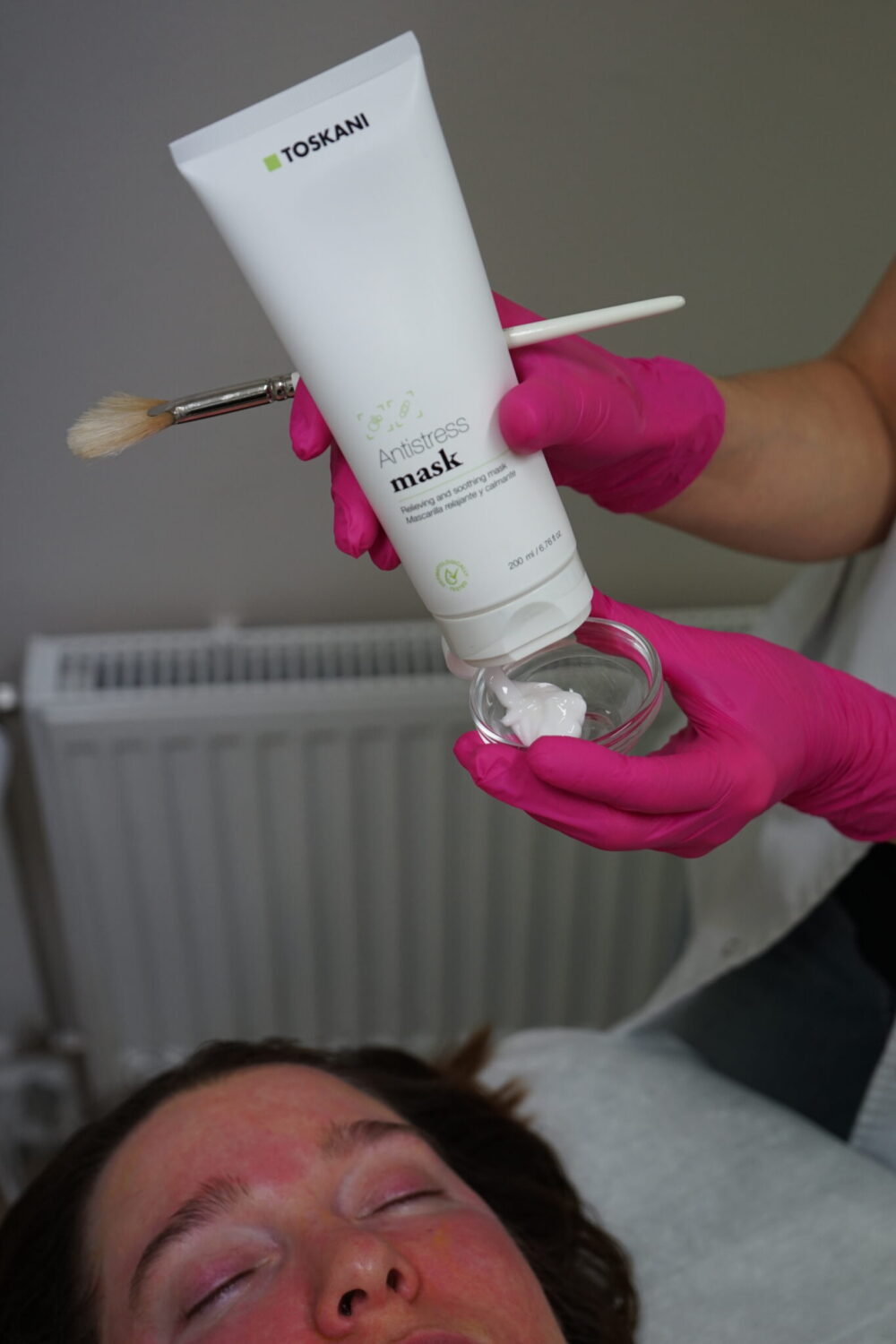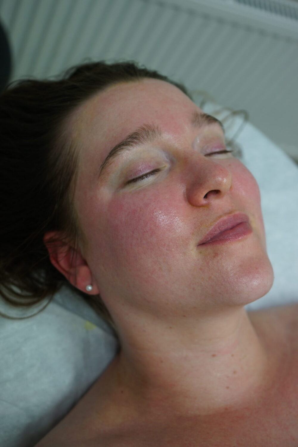 Meillä oli alun perin puhetta, että hän tekisi minulle kemiallisen kuorinnan. Kuitenkin analysoituaan kasvojeni ihoa, hän päätti vaihtaa taktiikkaa. Ihoni oli tukossa, mutta samalla kuiva ja herkkä.